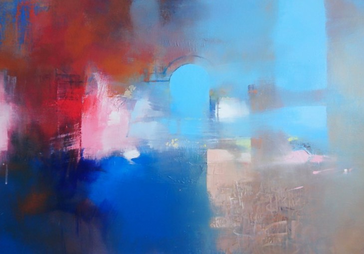 Glittering. Luminous. Blue alternating with tiny white. Sparkling dots tucked away in the vault above. Serene sky. A soothing moon beaming down.